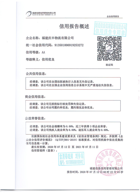福建慶豐物流有限公司2020