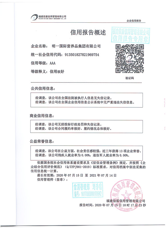 明一國際營養品集團有限公司2020