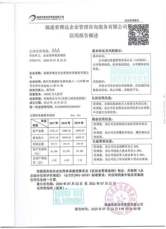 福建省博達企業管理咨詢服務有限公司202007