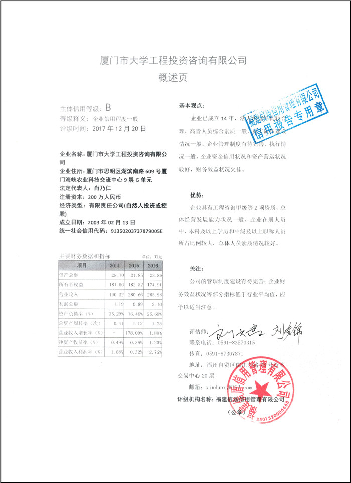 廈門大學工程投資咨詢有限公司 XDPJ201712243