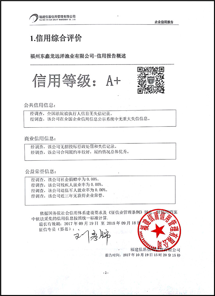 福州東鑫龍遠洋漁業有限公司 XDBG201710004