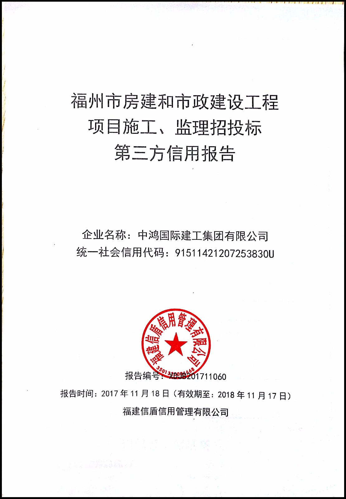 中鴻國際建工集團有限公司 XDJB201711060