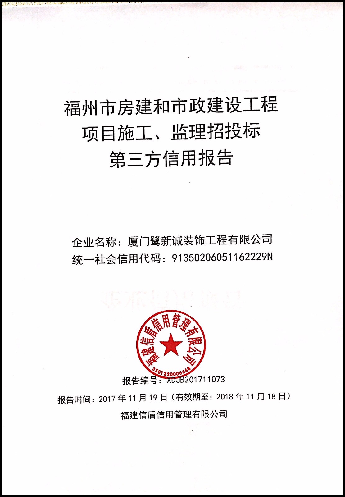 廈門鷺新誠裝飾工程有限公司 XDJB201711073
