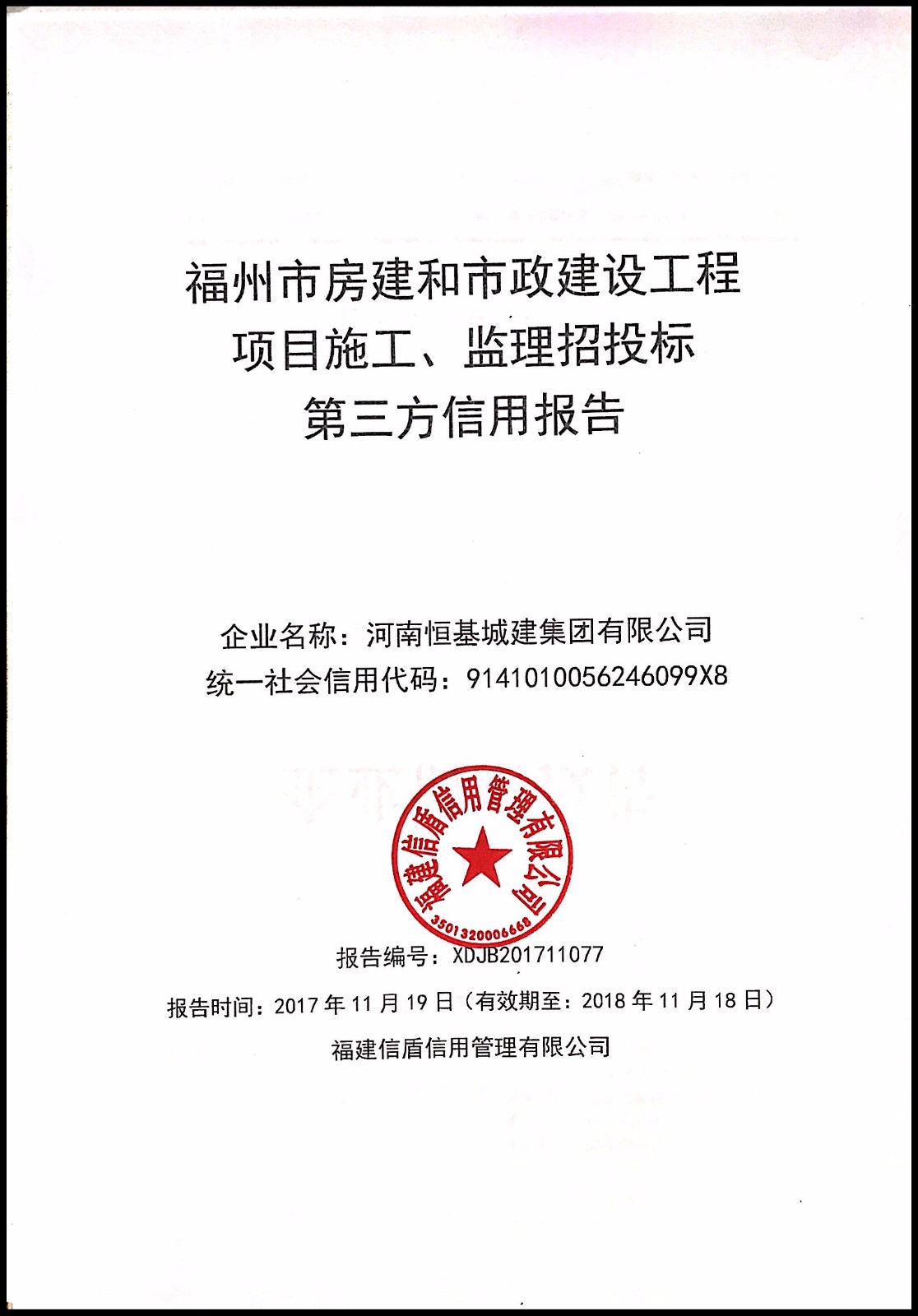 河南恒基城建集團有限公司 XDJB201711077