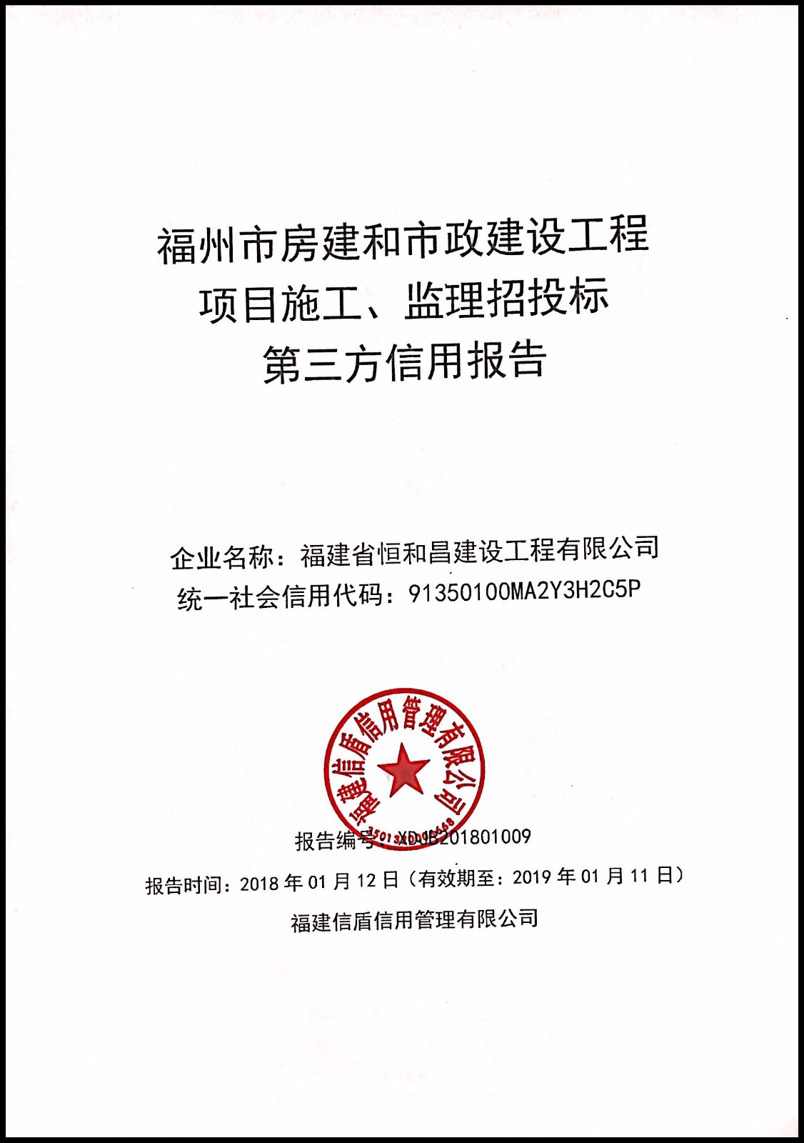 福建省恒和昌建設工程有限公司 XDJB201801009