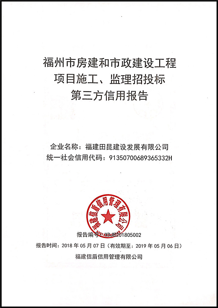 福建田昆建設發展有限公司 XDJB201805002
