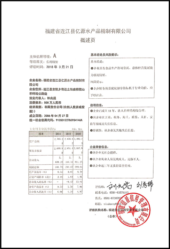 福建省連江縣億源水產品精制有限公司 XDPJ201803152