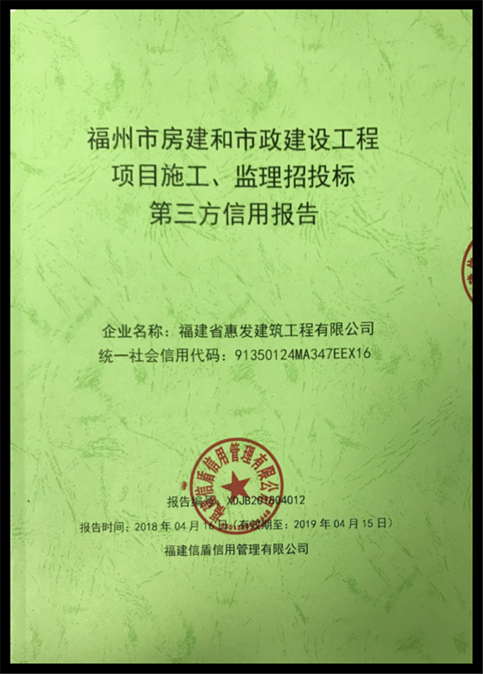 福建省惠發建筑工程有限公司 XDJB201804012