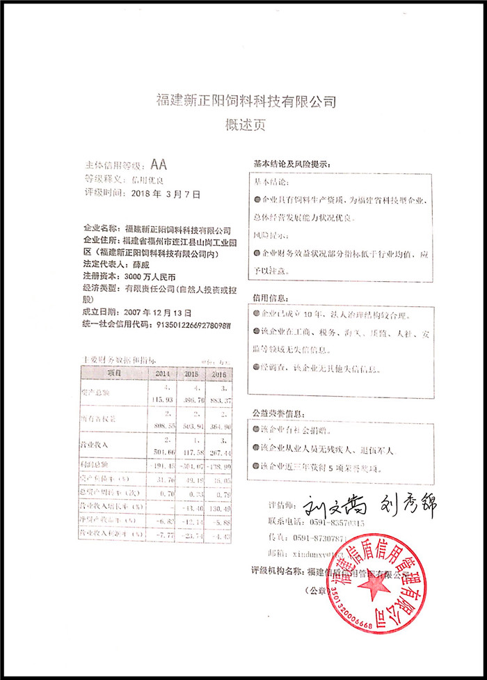 福建新正陽飼料科技有限公司 XDPJ201803203