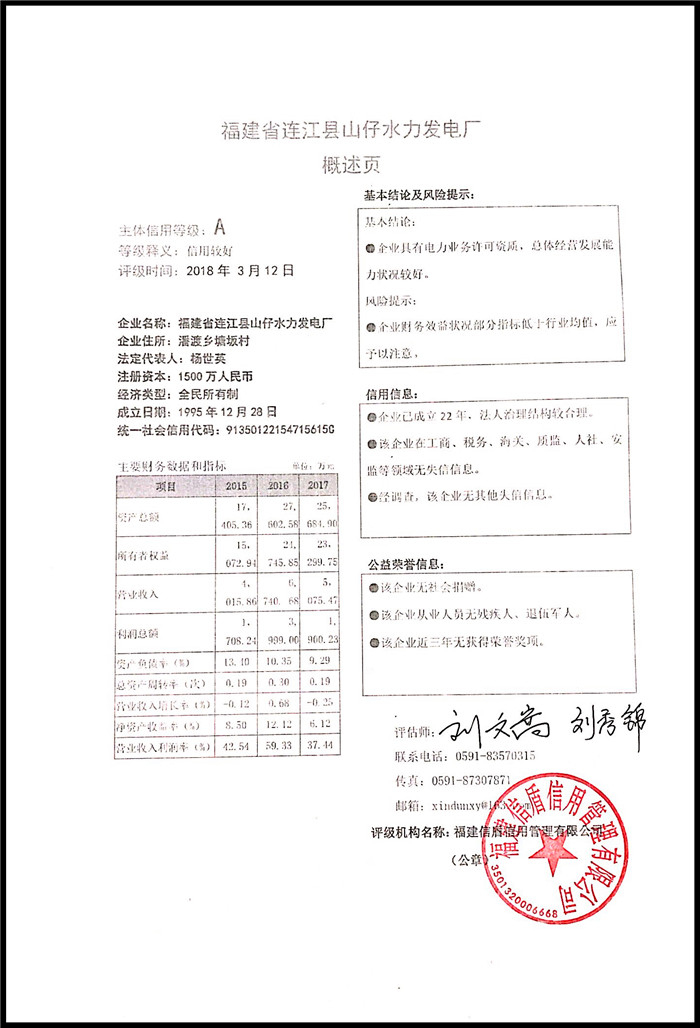 福建省連江縣山仔水力發電廠 XDPJ201803220