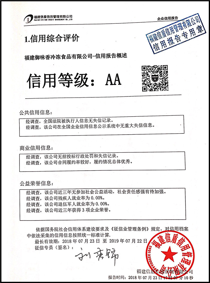 福建御味香冷凍食品有限公司 XDBG201807002