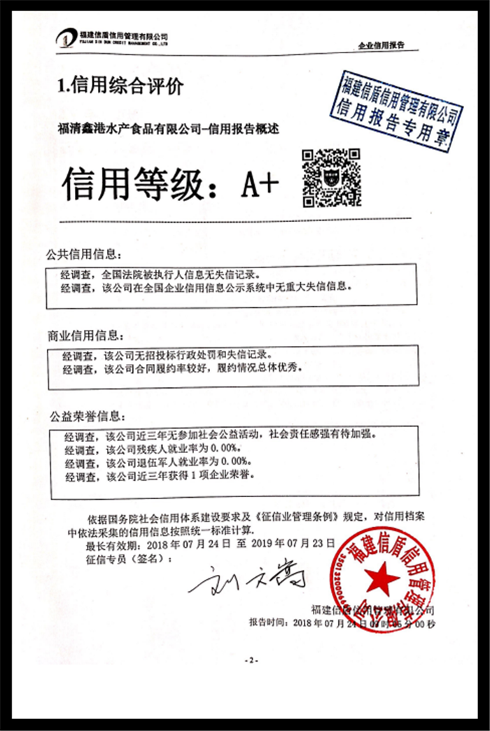福清鑫港水產(chǎn)食品有限公司 XDBG201807005