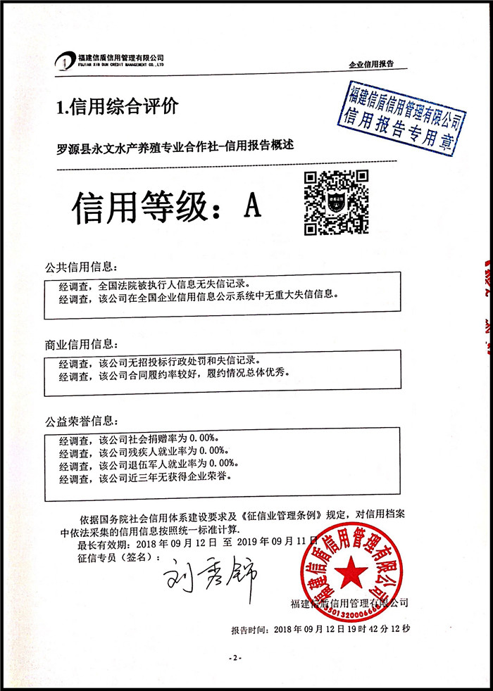 羅源縣永文產養殖專業合作社 XDBD201809022