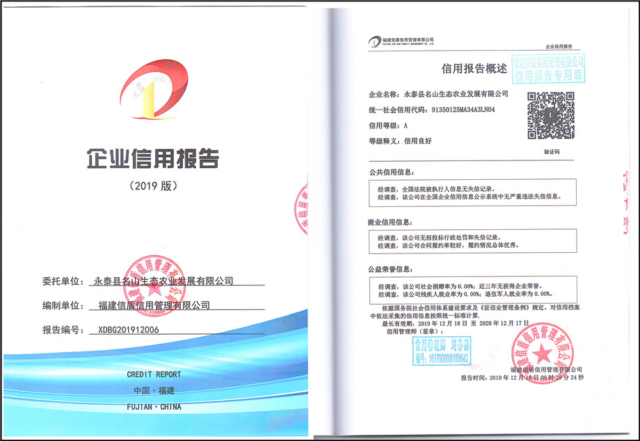 永泰縣名山生態農業發展有限公司2019