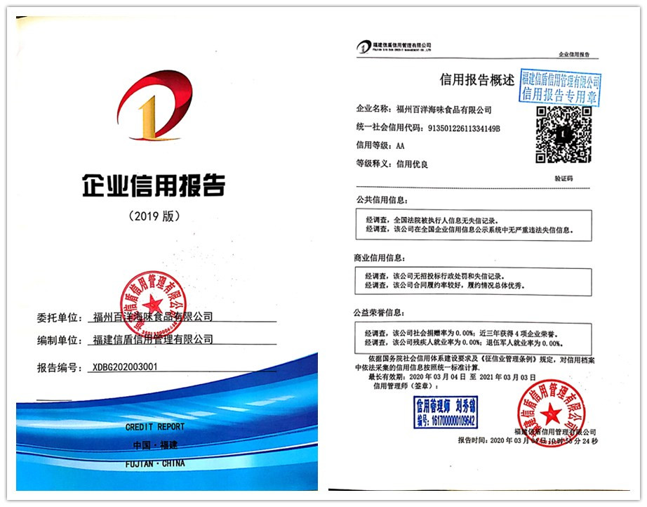 福州百洋海味食品有限公司2020